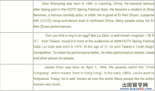 ( )26. When he was ____________ years old, Xiao Shenyang became a student of Zhao Benshan.