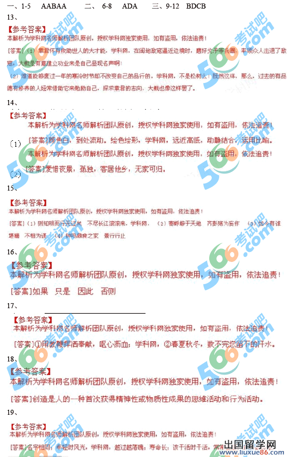 2013山东高考语文试题及答案解析 2013山东高考理科数学试题及答案解析 2013山东高考文科数学试题及答案解析