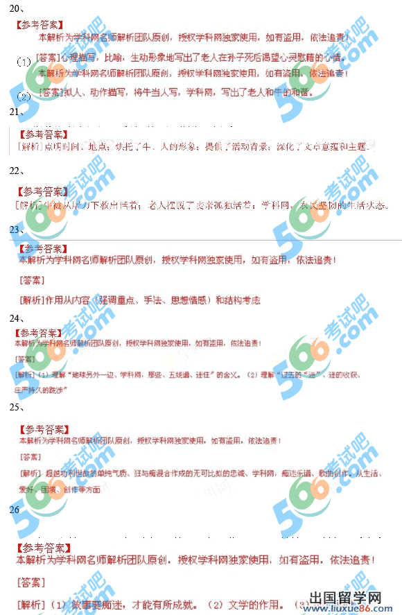 欢迎您收藏本网站,了解其他科目的真题及答案,我们会在第一时间为大家发布哦!