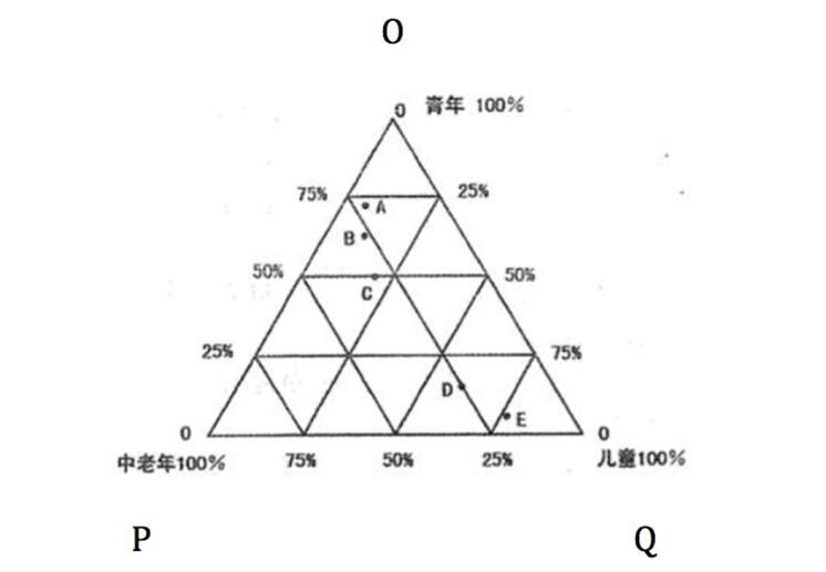 1.找顶点,所求为中老年人所占比例,可知顶点为P;