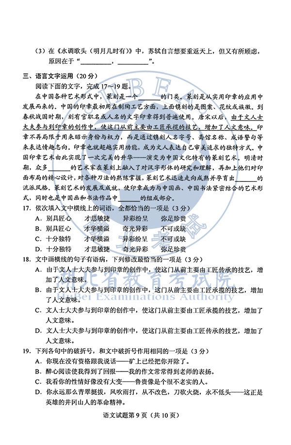 五月过去,迎来六月,六月不平凡,很多大学毕业生从此开始进开云官方网页版社会工作;六月也是高中毕业季,结束了中学生涯。高考已过去,是否发挥好了呢?开云官方网页版高考频道为您提供2019年湖北高考语文试卷。如果您想要找的真题及答案没有显示,可按Ctrl+F5进行刷新。同时建议大家按Ctrl+D收藏本网站!更多高考分数线、高考成绩查询、高考志愿填报、高考录取查询信息等信息请关注我们网站的更新!