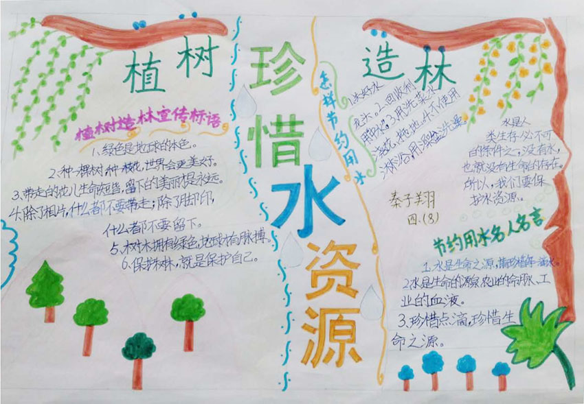 4. 水是大地妈妈的血液,我们爱水、节水,大地妈妈才会“哗哗”欢笑。