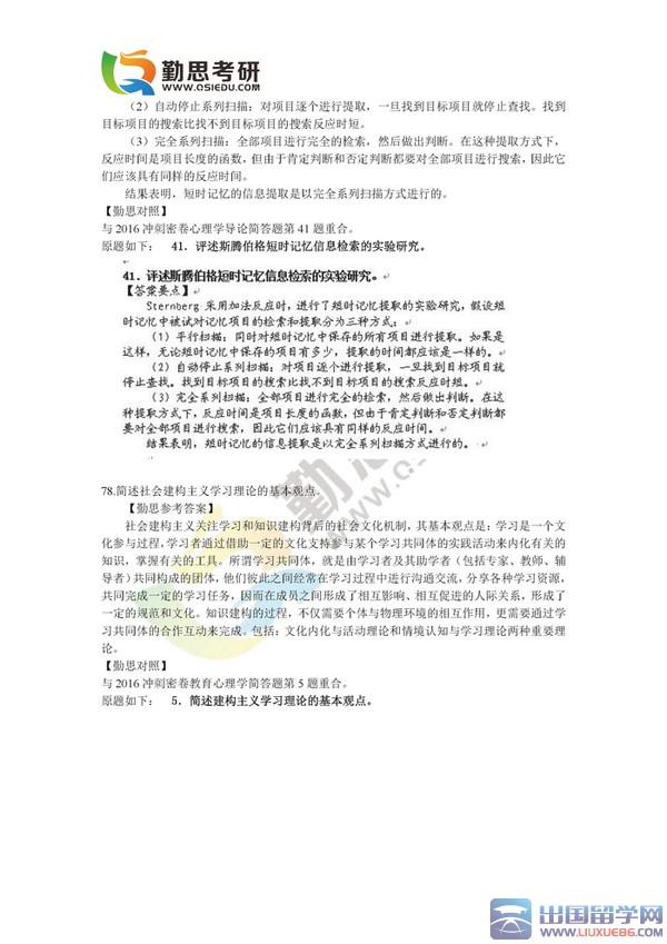 复习建议:对于简答题,大家不用过于担心,总的来说,功夫积累在平时,知识点基本都是考研老师常常强调的考点,都出现了。