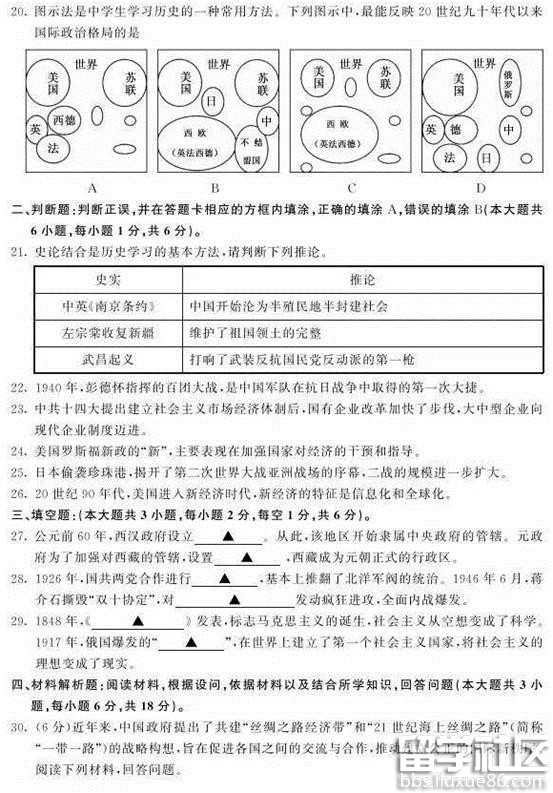 点击下载>>>江苏省苏州市2017年初中毕业暨升学考试历史试题(精校word,含答案)