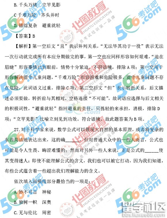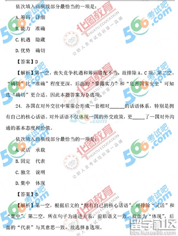 “梅花香自苦寒来,宝剑锋从磨砺出”,希望同学们对言语理解与表达的题目,充分重视,认真备考,稳扎稳打,争取在今年的国考中金榜题名。