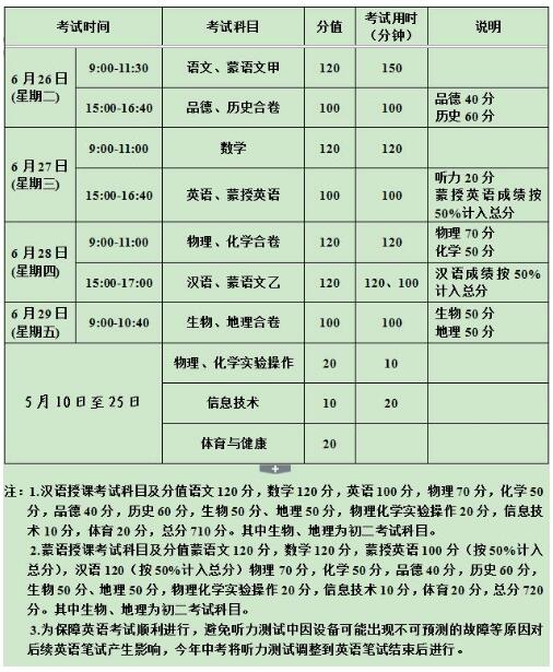 内蒙古鄂尔多斯2018年中考时间:6月26日-29日