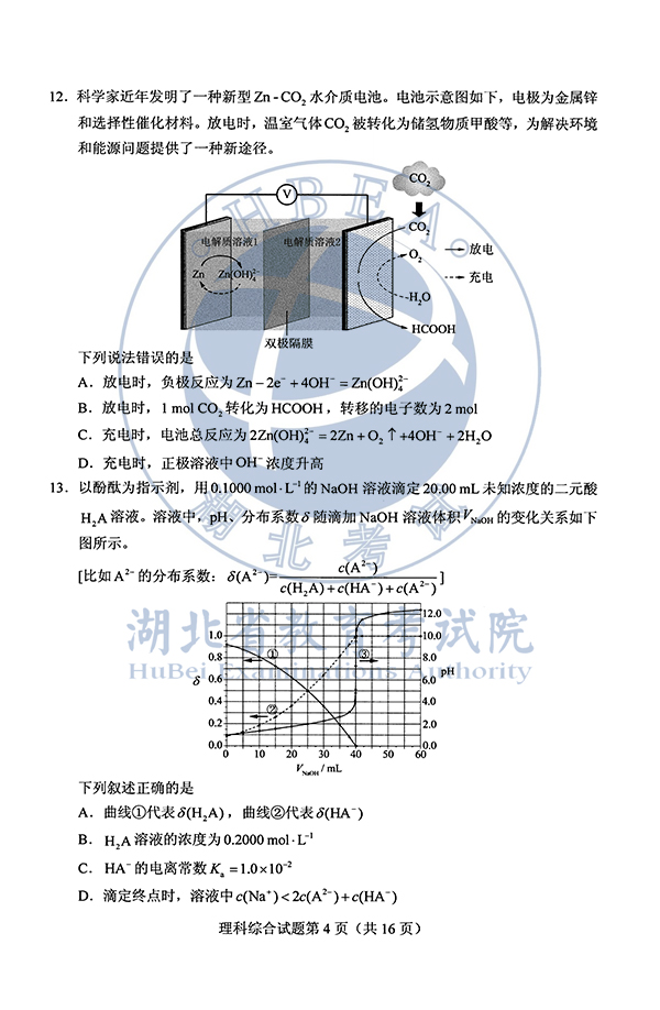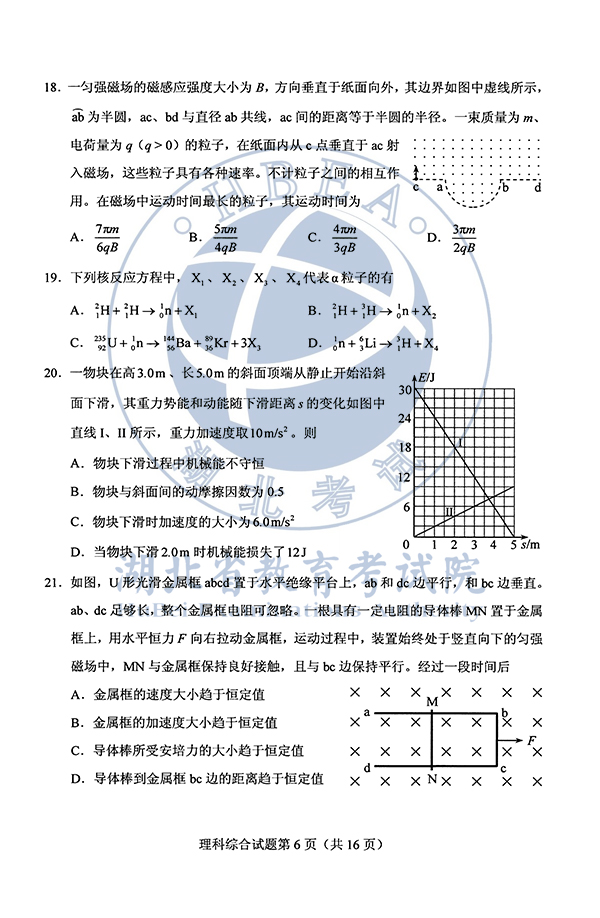 2020湖南高考理科综合试卷及参考答案(图文版)