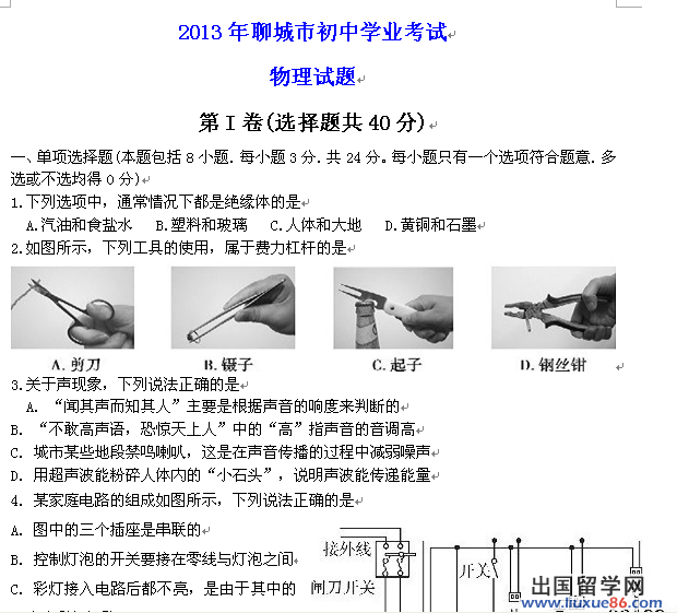 2014年中考已经来临,开云官方网页版中考频道小编在此为您特别提供2013聊城中考物理真题及答案(word版) ,希望对您2014年中考备考复习有所帮助!祝您2014年中考金榜题名,取得好的成绩!