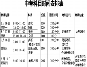 4月15日, 从兰州市初高中招生工作会议上获悉,2014年兰州市中考继续实行初中毕业生学业考试、高中阶段学校招生考试两考合一的形式,考试时间定于6月16日—19日。