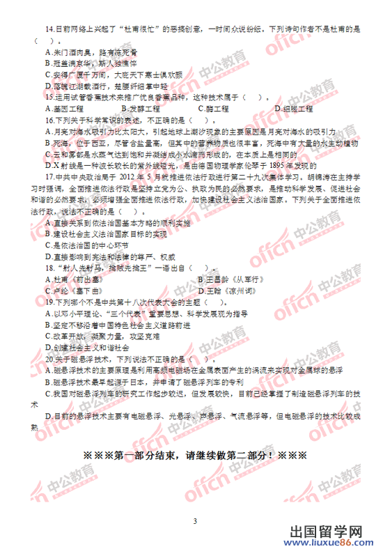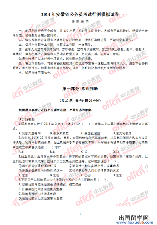 与2014安徽公务员行测试题及答案相关的公务员考试模拟试题