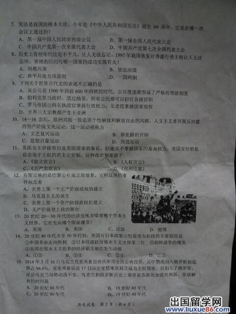 开云官方网页版2014贵港中考历史真题