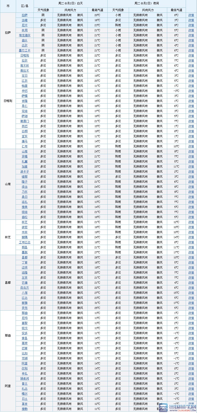 拉萨:阴,13℃-26℃,微风,无持续风向;