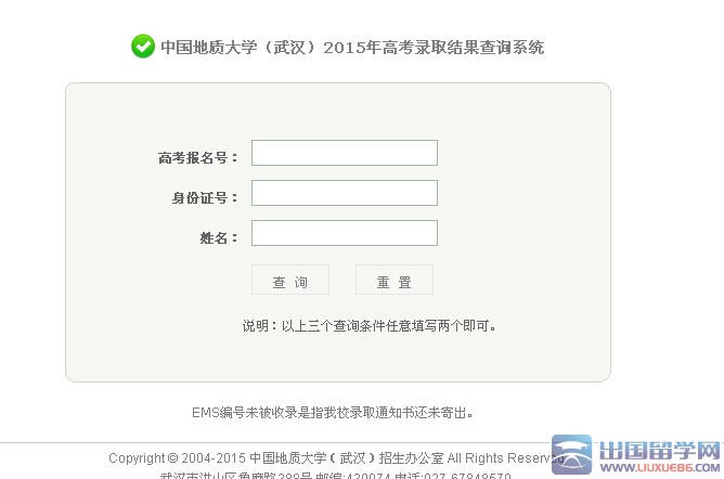 中国地质大学(武汉)2015高考录取结果查询开云官方网页版口