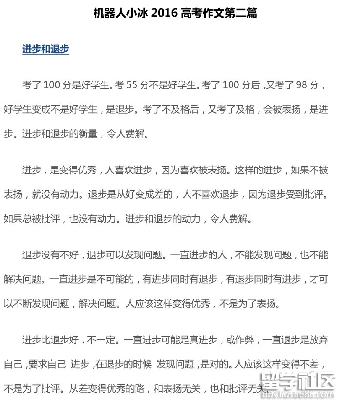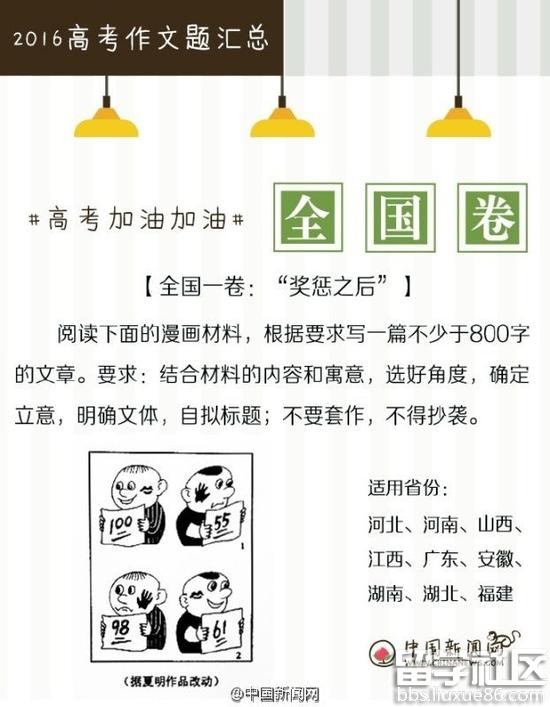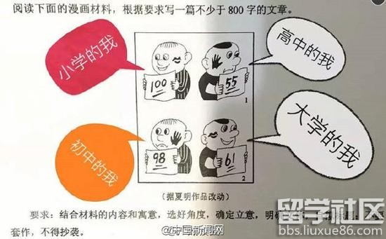 请注意,假如你是 刚参加完语文科考试的考生,切勿拿以上分析归纳当标准答案;如果你昨天不是按以上“套路”写,并不意味着你“跑题”或“没写好”,集中精力准备好下面的考 试才是关键。每年高考作文题一出,媒体和各方教育专家以至于普通百姓,都喜欢对比不同地方作文题的“好坏”。从38年高考作文命题的变化,可以见证时代与 思想演变的过程,在这个意义上,高考作文不仅是学生语文训练的检验,而且是意涵丰富的“社会文本”。