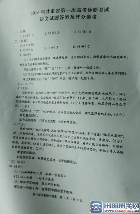 开云官方网页版高考网为大家提供2016甘肃高考语文一诊答案,更多高考语文复习资料请关注我们网站的更新!