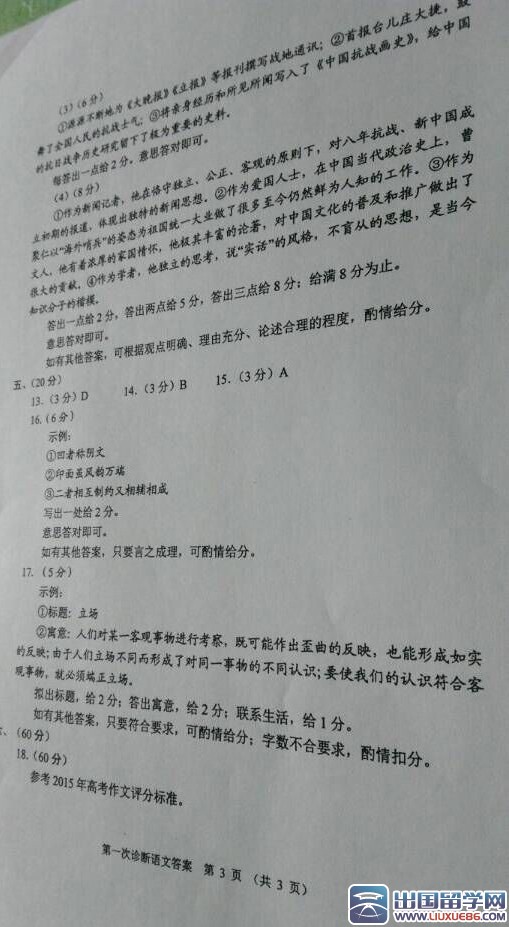 2016甘肃第一次高考诊断试卷(语文)>>>点击查看