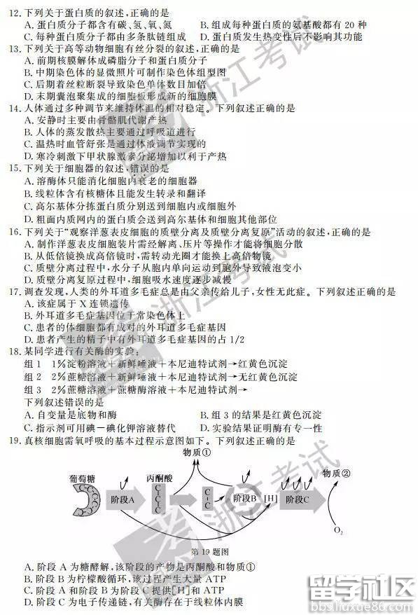 2016年10月浙江新高考学考选考试题及答案汇总10-20