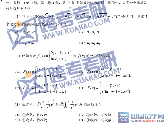 2016考研数学二真题推荐访问
