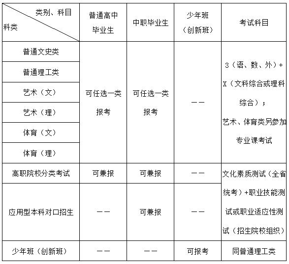 我们汇总了考生类别与报考科类对照表(如下表),请广大考生参照选报。