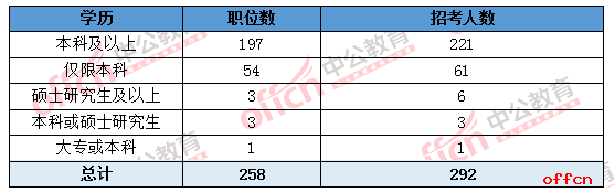 2019国考江西招录职位分析:258个职位招录292人 学历要求较高