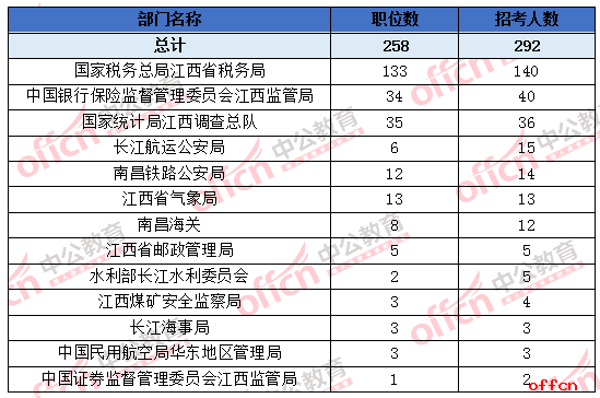 2019国考江西招录职位分析:招录292人 部门变动较大