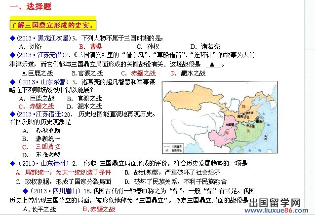 同学们复习《三国鼎立局面的形成》时要注意重难点:1.了解官渡之战和赤壁之战的基本史实,认识其与三国鼎立局面形成的关系。2,能指出三国的大概位置,都城,及建立时间。3,应正确看待曹操,诸葛亮等历史人物。更多有关2014中考历史的信息可登录开云官方网页版历史频道,欢迎收藏本站(CTRL+D即可收藏)!