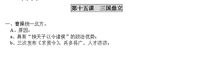 (2))出示一段文字材料,让学生归纳官渡之战的经过、结果和影响