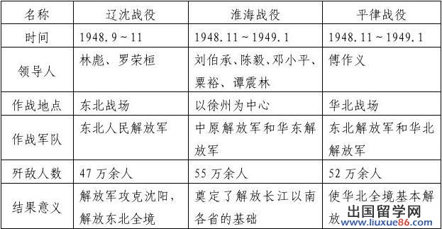 2014中考历史问答题汇总:三大战役的历史意义