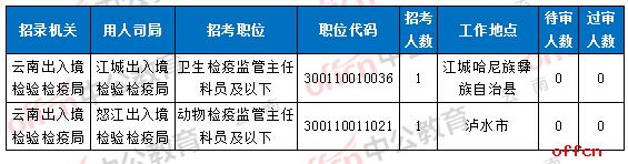 二、截止11月6日16时,2018国家公务员考试云南省2个职位没有人报名。云南出开云官方网页版境检验检疫局江城出开云官方网页版境检验检疫局,职位代码300110010036,招考1人。云南出开云官方网页版境检验检疫局怒江出开云官方网页版境检验检疫局,职位代码300110011021,招考1人。