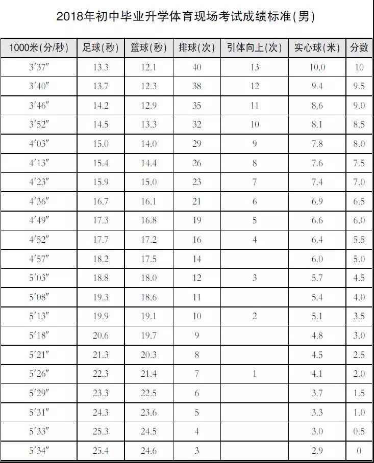 北京中考体育现场考试成绩标准,以2018北京中考为例,2019考生可以参考练习。