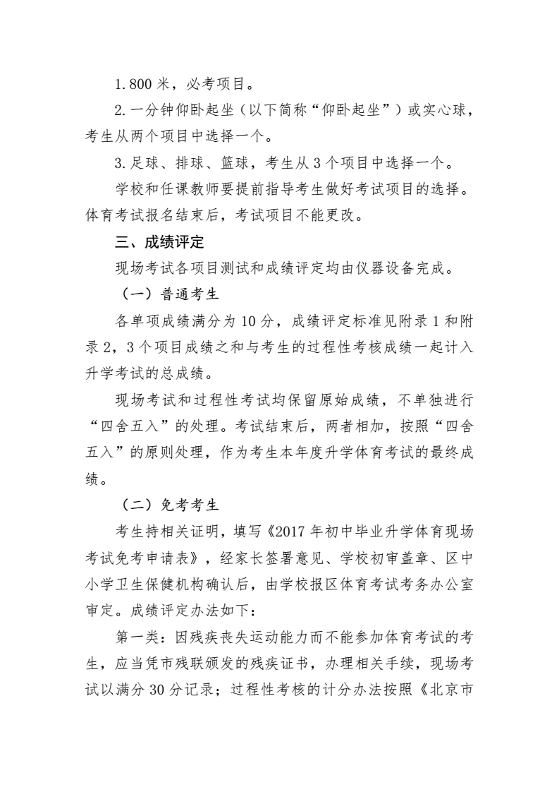 考生持相关证明,填写《2018年初中毕业升学体育现场考试免考申请表》,经家长签署意见、学校初审盖章、区中小学卫生保健机构确认后,由学校报区体育考试考务办公室审定。成绩评定办法如下: