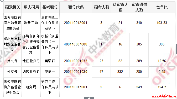 2018国考北京地区过审人数最多五大职位