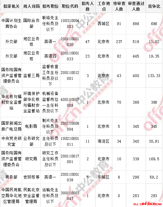 2018国考北京地区过审人数最多十大职位