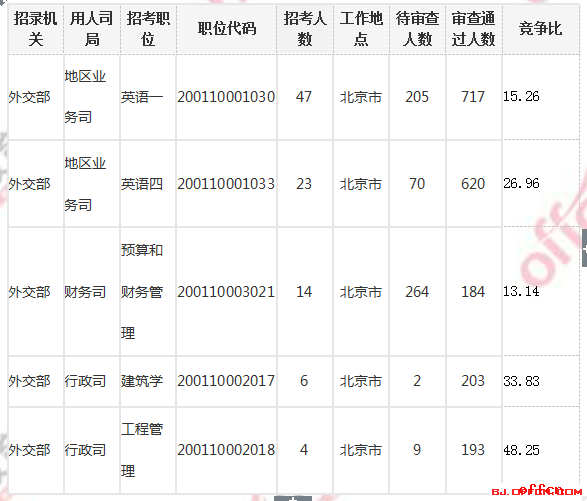 外交部审查通过最多前五职位