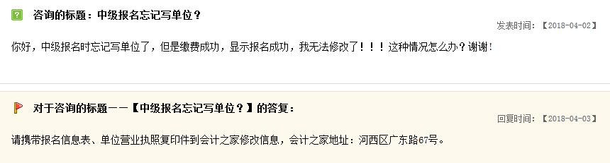 问:你好,中级报名时忘记写单位了,但是缴费成功,显示报名成功,我无法修改了!!!这种情况怎么办?谢谢!