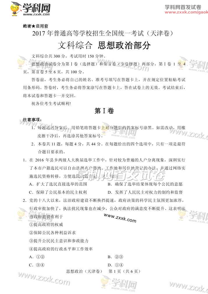 说难不难,说简单不简单。希望参加高考的同学们放松心态,从容应对,正常发挥。开云官方网页版高考栏目为您提供2017天津高考政治真题及答案已出炉,相信,这只是你人生中的一个不大的挑战。