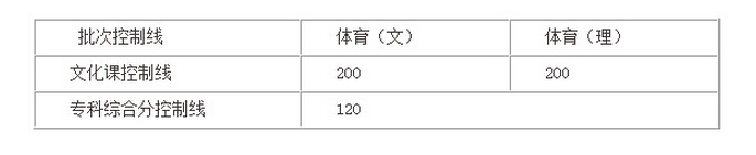 2015年安徽体育类第二批次控制线:文化200 专科综合分120