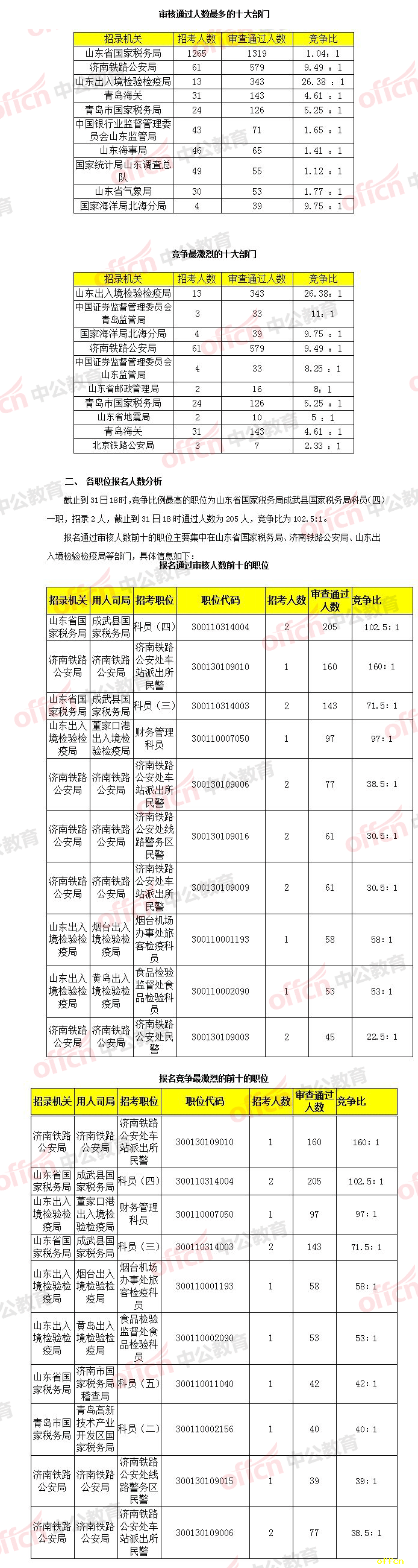 截止到31日18时,通过审核人数前三位的部门依次是:山东省国家税务局、济南铁路公安局、山东出开云官方网页版境检验检疫局,三部门通过审核总人数达2241人,占通过审核总人数的75.7%。