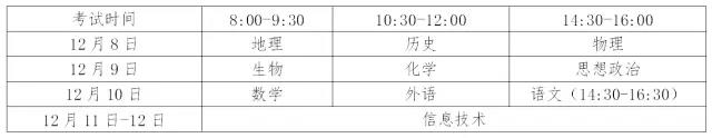 本次全省普通高中学业水平考试10个科目全部开考。各科目考试具体时间安排如下: