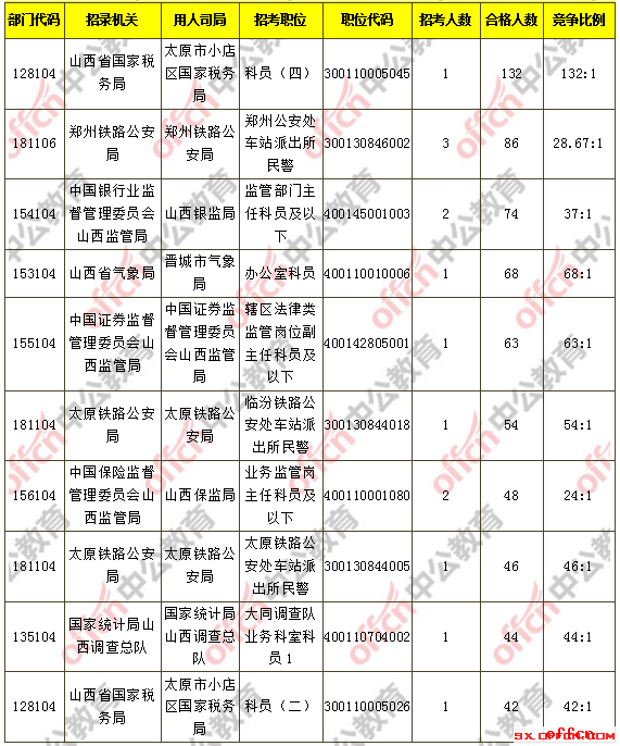 报名通过审核人数前十的职位主要集中在山西省国家税务局、国家统计局山西调查总队、郑州铁路公安局等部门,具体信息如下: