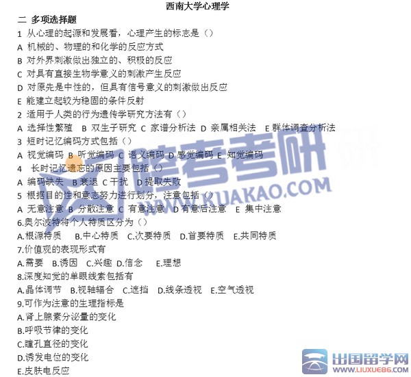 2016年研究生考试已经结束,开云官方网页版考研频道小编紧密关注2016考研真题及答案,并在考后第一时间为大家公布2016年西南大学心理学考研真题,建议您收藏本网站 (ctrl+D收藏即可)。更多考研信息请关注我们网站的更新!