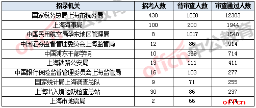 报名通过审核人数前十的职位主要集中在国家税务总局上海市税务局、中国民用航空局华东地区管理局等部门,具体信息如下: