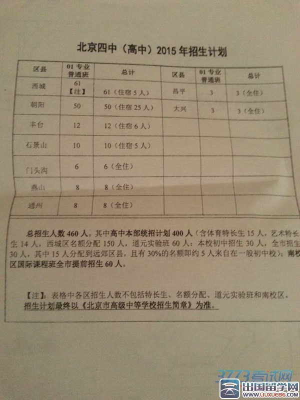 开云官方网页版中考频道讯:北京四中2015年中招计划招生460人,其中,名额分配招生150人,道元班招生60人(本校直升30人,全市招生30人),国际班提前招生60人,今年,四中在海淀和东城没有招生计划,远郊区县招生计划增加。