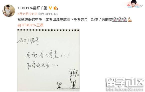 TFBOYS王源中考 王俊凯易烊千玺送祝福
