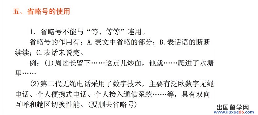 ①省略号就表示“等”、“等等”,省略号和“等”字,都可表列举省略,两者用一即可,不能同时使用;