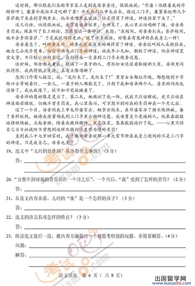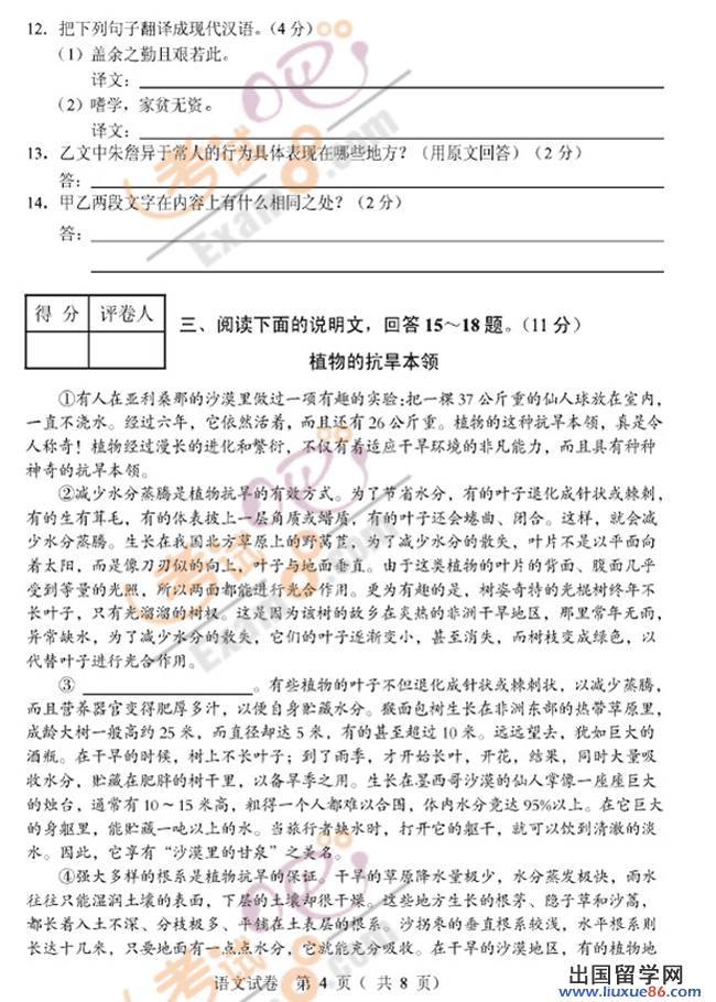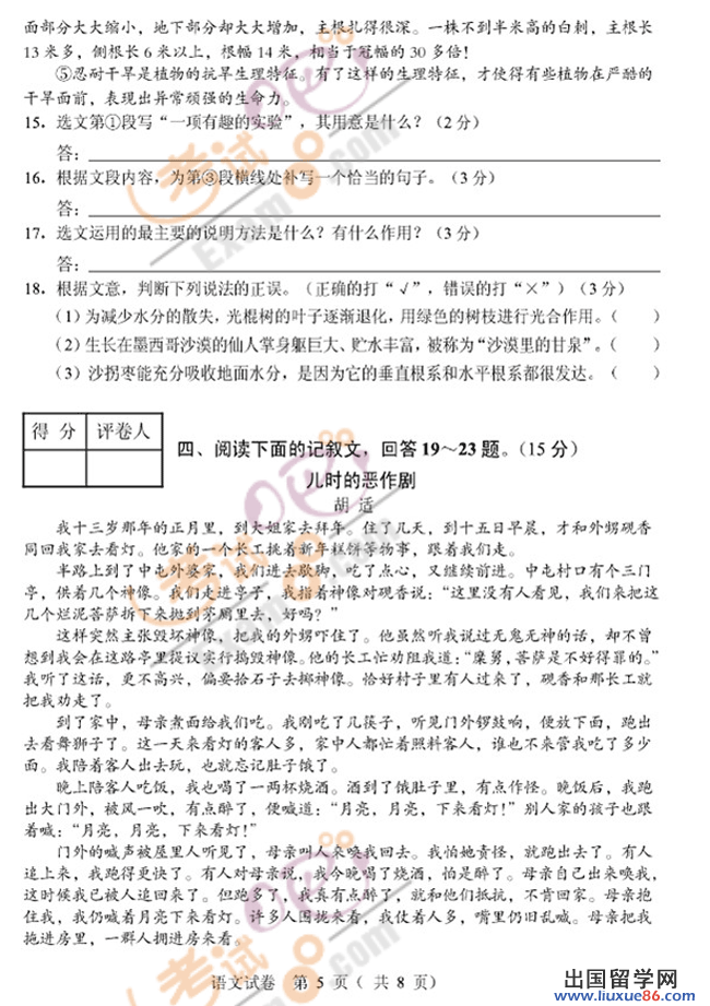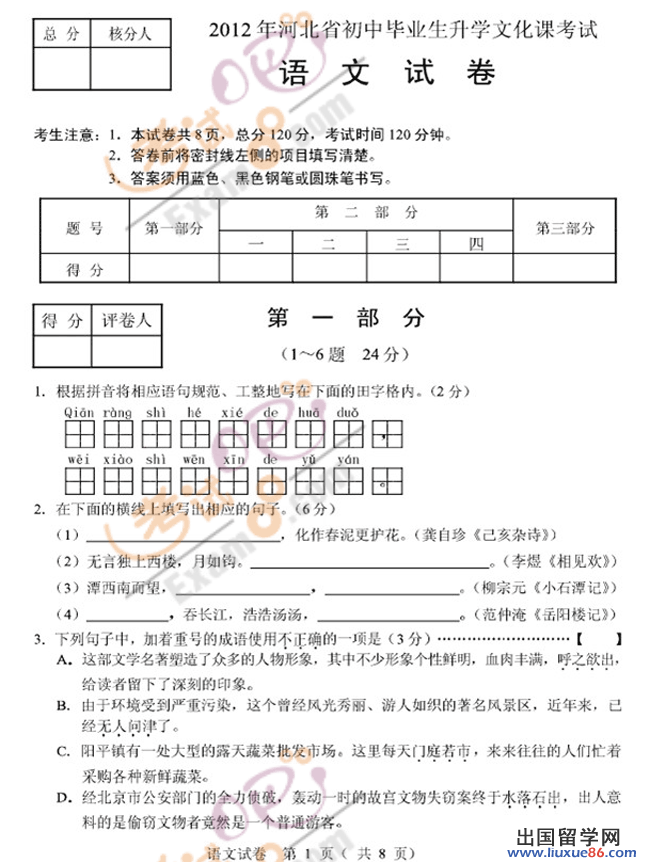 石家庄中考语文试题及答案2017