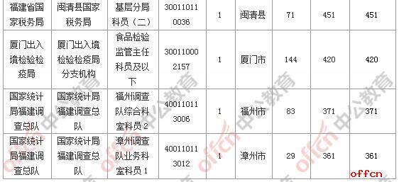报名通过审核人数前十的职位主要集中在厦门出开云官方网页版境检验检疫局、厦门海关、国家统计局福建调查总队,具体信息如下: