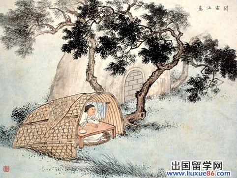 王裒,魏晋时期营陵(今山东昌乐东南)人,博学多能。父亲王仪被司马昭杀害,他隐居以教书为业,终身不面向西坐,表示永不作晋臣。其母在世时怕雷,死后埋葬在山林中。每当风雨天气,听到雷声,他就跑到母亲坟前,跪拜安慰母亲说:“裒儿在这里,母亲不要害怕。”他教书时,每当读到《蓼莪》篇,就常常泪流满面,思念父母。