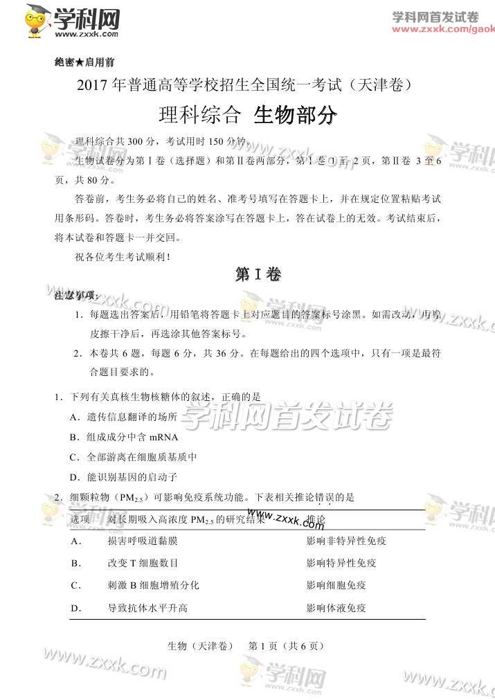 2017年高考结束了,在高考后考生们想知道高考考了哪些内容呢?下面是开云官方网页版高考栏目为你整理的“2017年高考天津生物真题及答案”,更多高考资讯请关注本站!
