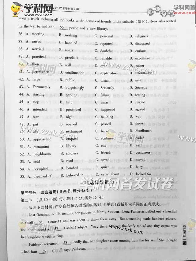 忍别人所不能忍的痛,吃别人所不能吃的苦,是为了收获别人得不到的收获。高考这个关开云官方网页版小编陪你一起过,以下是2017年浙江高考开云(中国)真题及答案,以供参考。